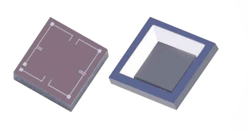 GDP2604 型压阻式压力敏感芯片采用 6 寸 MEMS 产线加工完成,该压力敏感芯片由一个弹性膜及集成在膜上的四个电阻组成,四个压敏电阻形成了惠斯通电桥结构,当有压力作用在弹性膜上时电桥会产生一个与所加压力成线性比例关系的电压输出信号。